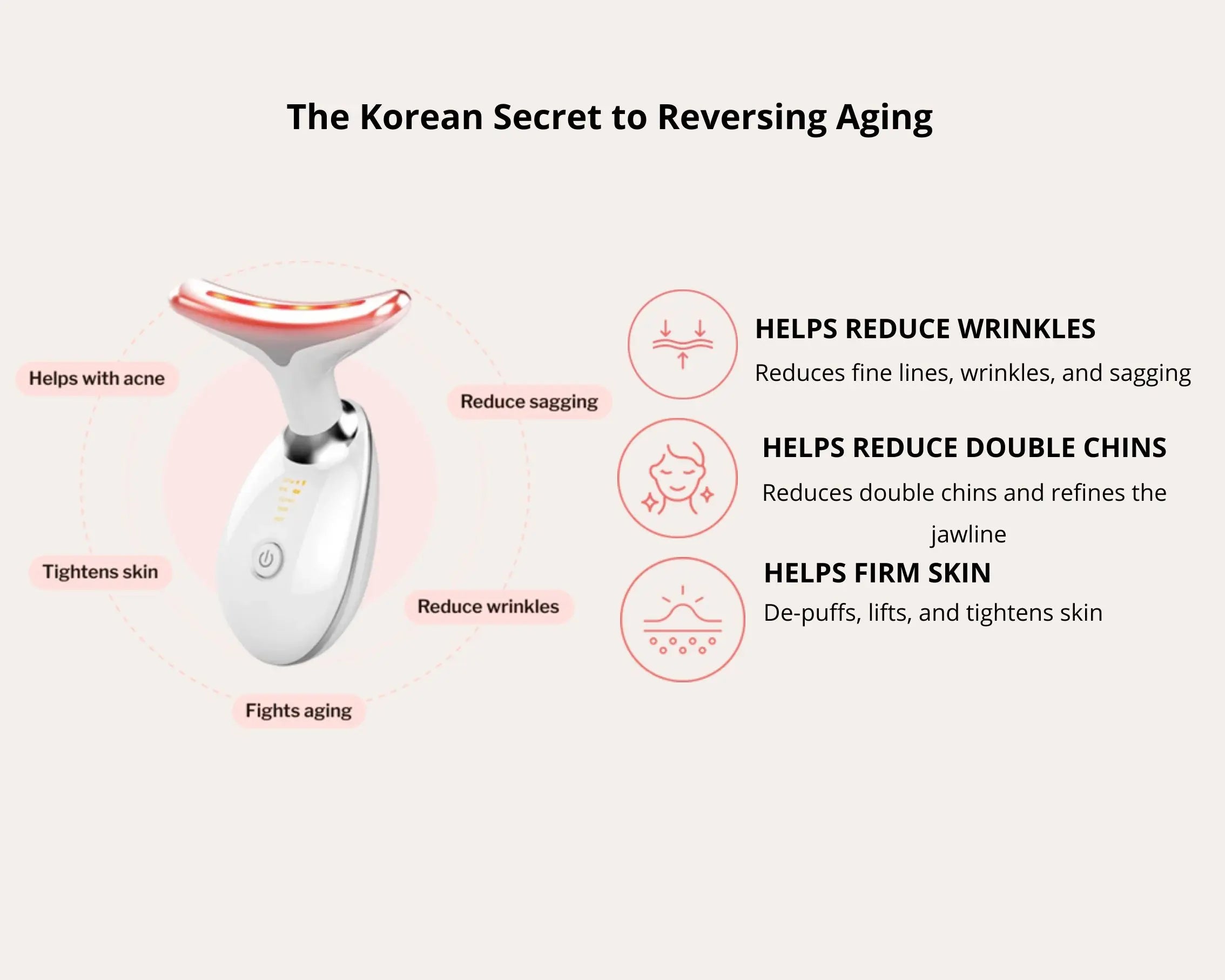 The DermaLift 7 Colors is your at-home solution for younger, firmer skin. Using 7 therapeutic light modes combined with revitalizing massage, it helps reduce fine lines, crow’s feet, and deep wrinkles while improving elasticity and lifting the skin. It also works to define the jawline and reduce double chin, leaving your face and neck looking smoother, tighter, and naturally rejuvenat
